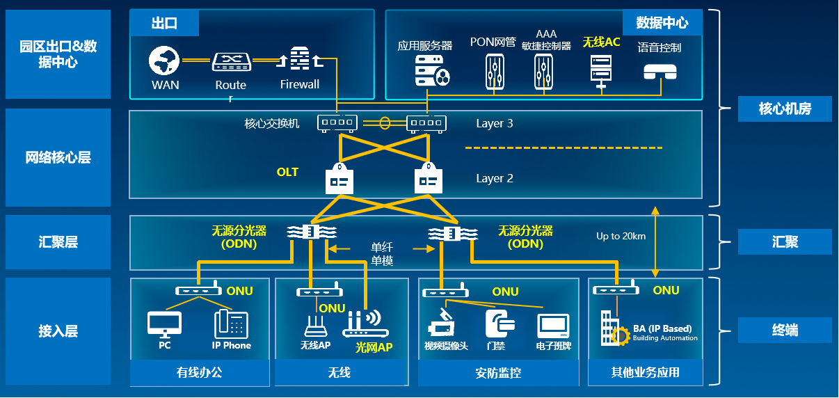 9001cc 以诚为本 9001cc全光网顺利获得各种形态的ONU设备给予有线网络接入,顺利获得室内、高密、室外、面板等各种型号AP和光AP为楼内用户给予无线网络接入